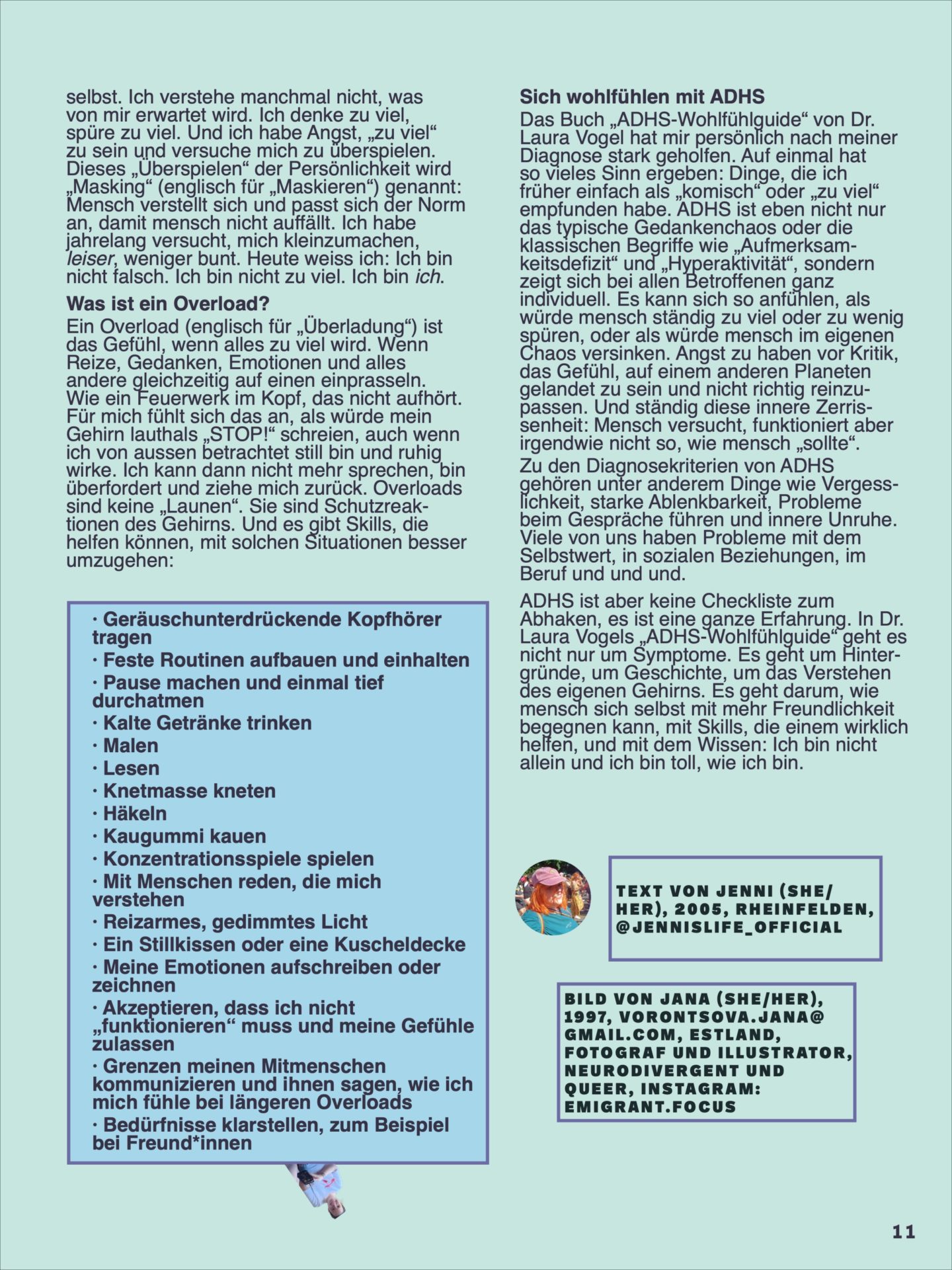 Das Buch „ADHS-Wohlfühlguide“ von Dr. Laura Vogel hat mir persönlich nach meiner Diagnose stark geholfen. Auf einmal hat so vieles Sinn ergeben: Dinge, die ich früher einfach als „komisch“ oder „zu viel“ empfunden habe. ADHS ist eben nicht nur das typische Gedankenchaos oder die klassischen Begriffe wie „Aufmerksamkeitsdefizit“ und „Hyperaktivität“, sondern zeigt sich bei allen Betroffenen ganz individuell. Es kann sich so anfühlen, als würde mensch ständig zu viel oder zu wenig spüren, oder als würde mensch im eigenen Chaos versinken. Angst zu haben vor Kritik, das Gefühl, auf einem anderen Planeten gelandet zu sein und nicht richtig reinzupassen. Und ständig diese innere Zerrissenheit: Mensch versucht, funktioniert aber irgendwie nicht so, wie mensch „sollte“. Zu den Diagnosekriterien von ADHS gehören unter anderem Dinge wie Vergesslichkeit, starke Ablenkbarkeit, Probleme beim Gespräche führen und innere Unruhe. Viele von uns haben Probleme mit dem Selbstwert, in sozialen Beziehungen, im Beruf und und und. ADHS ist aber keine Checkliste zum Abhaken, es ist eine ganze Erfahrung. In Dr. Laura Vogels „ADHS-Wohlfühlguide“ geht es nicht nur um Symptome. Es geht um Hintergründe, um Geschichte, um das Verstehen des eigenen Gehirns. Es geht darum, wie mensch sich selbst mit mehr Freundlichkeit begegnen kann, mit Skills, die einem wirklich helfen, und mit dem Wissen: Ich bin nicht allein und ich bin toll, wie ich bin.