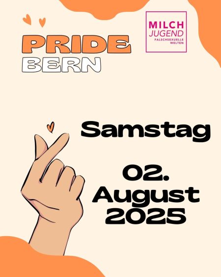 Veranstaltungskategorien: Jugendtreff · Pride Milchbar: Bern Pride 2. Aug., 13:00 – 15:00 Milchbar geht als Laufgruppe zur Bern Pride Bern veranstaltet seine Pride am 2. August 2025 und wir laden euch herzlich ein, mit uns an der Demo teilzunehmen! So findet ihr…