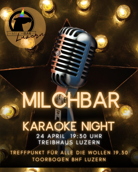 Veranstaltungskategorien: Bar · Jugendtreff Milchbar Luzern – Karaoke Night 24. Apr., 19:30 – 0:30 ~ Jeden zweiten Donnerstag im Treibhaus Luzern ~ 1x im Monat an einem Samstagnachmittag Komm vorbei und lerne uns kennen. Karaokeabend Zwei Mikrofone, ein grosser Bildschirm und gute Getränke an…
