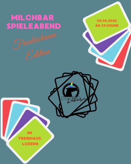 Veranstaltungskategorie: Jugendtreff Milchbar Luzern – Spieleabend 4. Jun., 19:30 – 23:00 Die Milchbar lädt zu einem gemütlichen Spielabend ein, bei dem verschiedene Gesellschaftsspiele gespielt werden. Ob Klassiker oder neue Lieblingsspiele, die Game Night bietet Raum für alle. Die Regeln sind schnell…