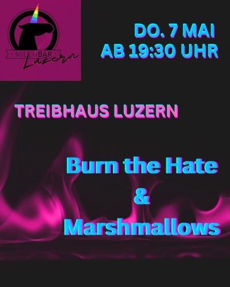Veranstaltungskategorie: Jugendtreff Milchbar Luzern Burn the hate and marshmellows 7. Mai., 19:30 – 23:00 Hass lässt sich zwar nicht verbrennen – aber vielleicht einfach wegschmelzen. Im Rahmen von „Burn The Hate“ lädt die Milchbar Luzern zu einem offenen Abend ein, der ein Zeichen gegen…